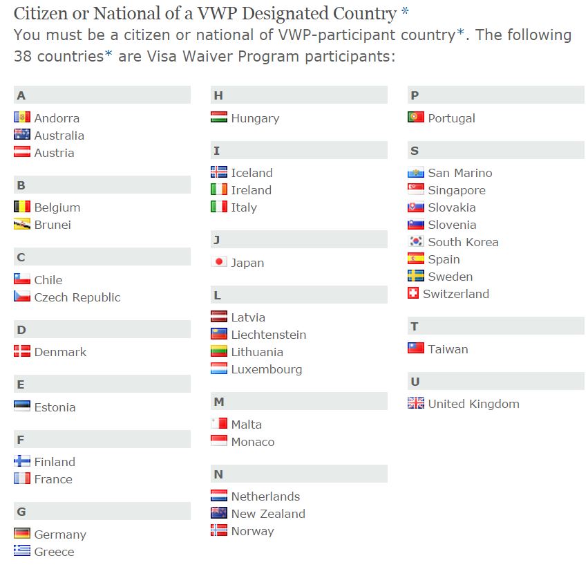 The Visa Waiver Program (VWP) allows citizens of participating countries* to travel to the United States without a visa for stays of 90 days or less, when they meet all requirements explained below. Travelers must be eligible to use the VWP and have a valid Electronic System for Travel Authorization (ESTA) approval prior to travel.